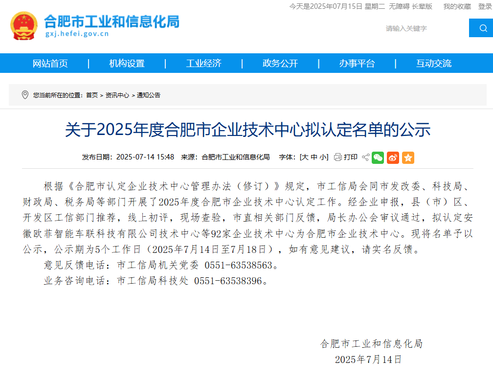 近日,依據《合肥市認定企業(yè)技術中心管理辦法(修訂)》相關規(guī)定,合肥市工業(yè)和信息化局聯合市發(fā)展和改革委員會、科學技術局、財政局、稅務局等部門組織開展了 2025