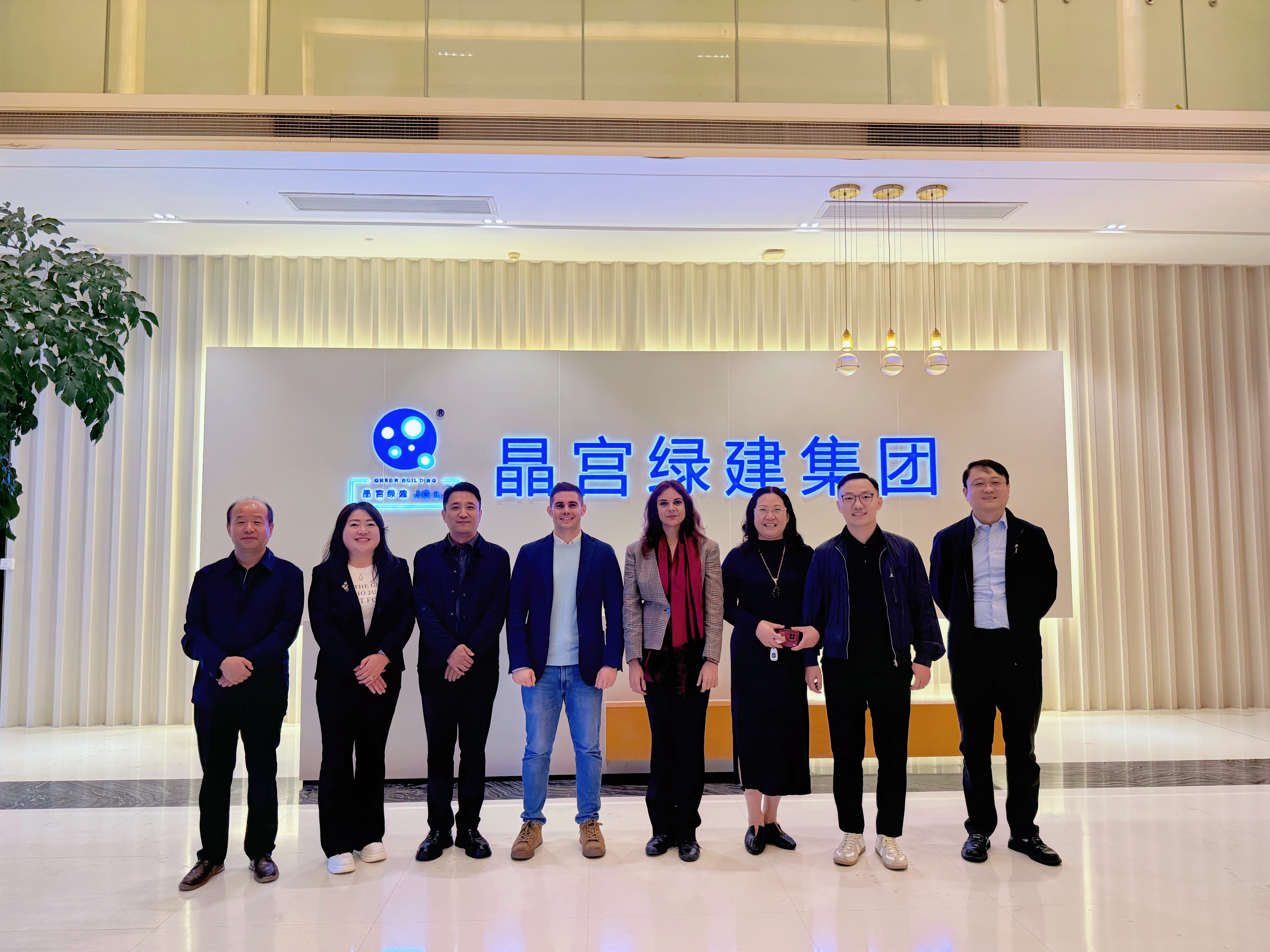 2025年7月17日至18日,葡萄牙考察團、杭州葡聯智能科技有限公司執(zhí)行董事楊志連、杭州超銳智能激光科技有限公司總經理王立強一行至晶宮綠建參觀考察。晶宮綠建集團